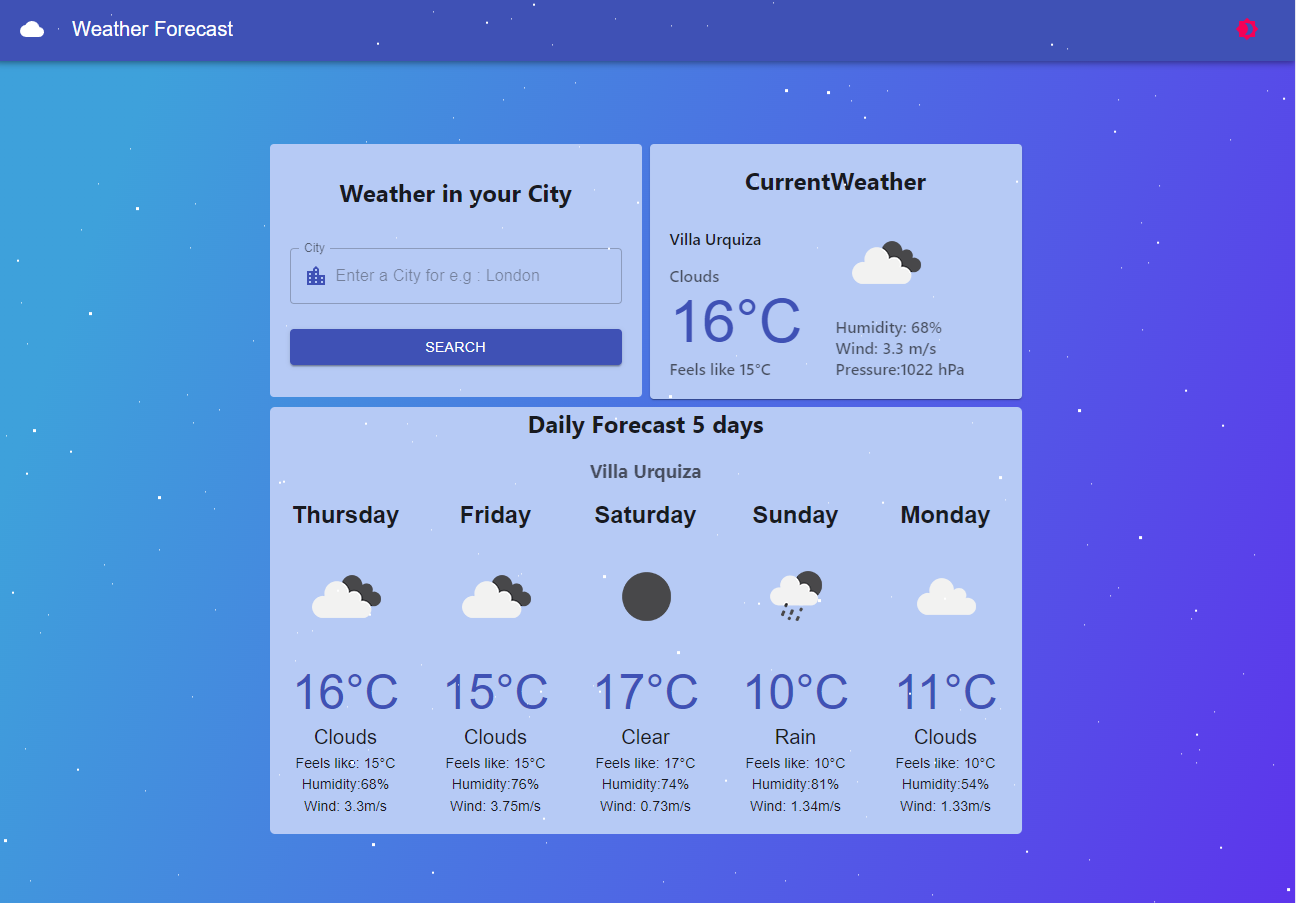 I made this app as part of a job interview, and it allows you to check the weather anywhere in the world! It features a user-friendly interface and provides real-time weather updates, making it a handy tool for planning your day or travel.